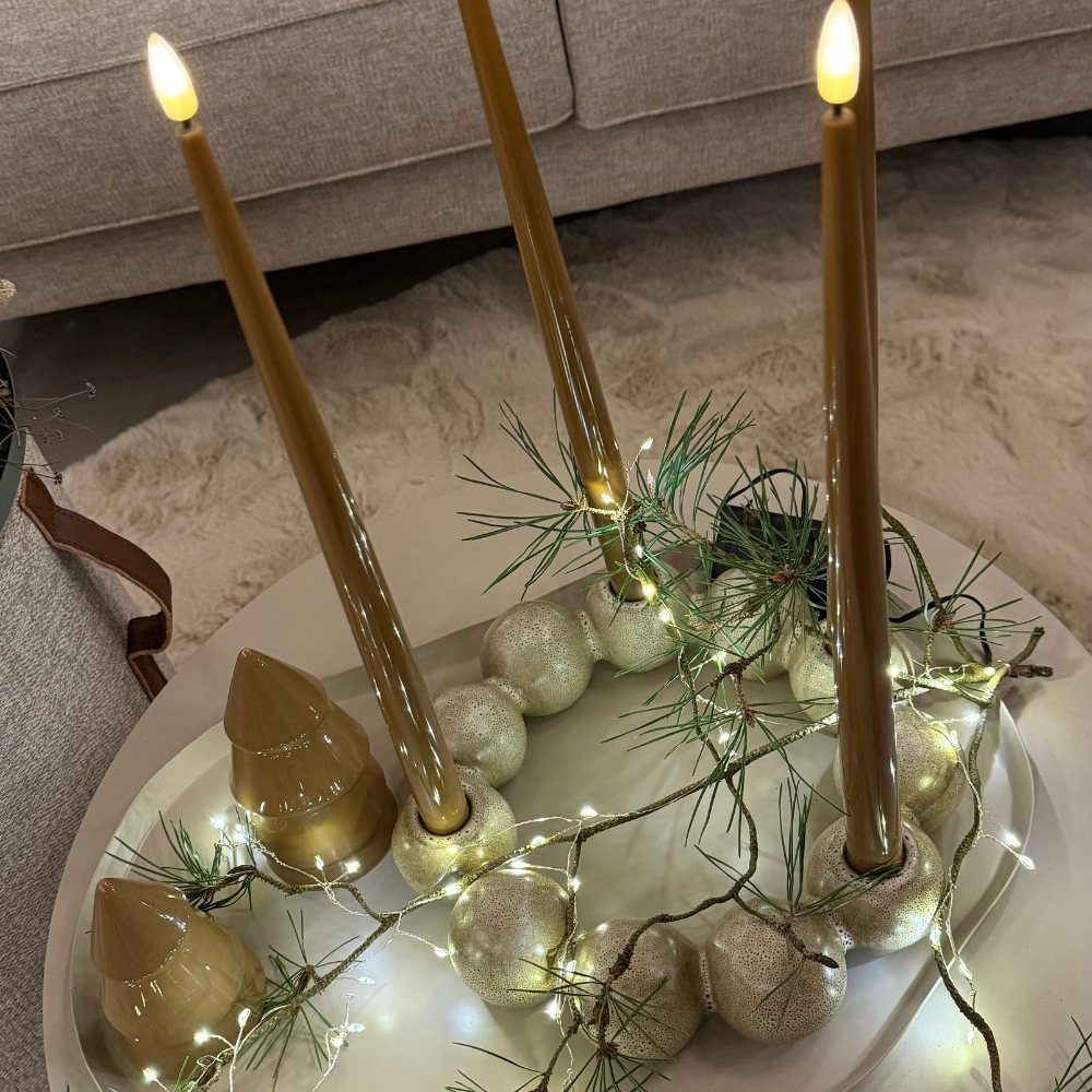Besonders beliebt sind Kerzenhalter oder Schalen, die als Adventskranz arrangiert werden. Der große Vorteil: Nach der Weihnachtszeit kannst du sie ganz einfach umfunktionieren und das ganze Jahr über weiter nutzen. Auch Magnethalter auf Metalltabletts sind eine moderne Lösung – flexibel, minimalistisch und immer wieder neu gestaltbar.